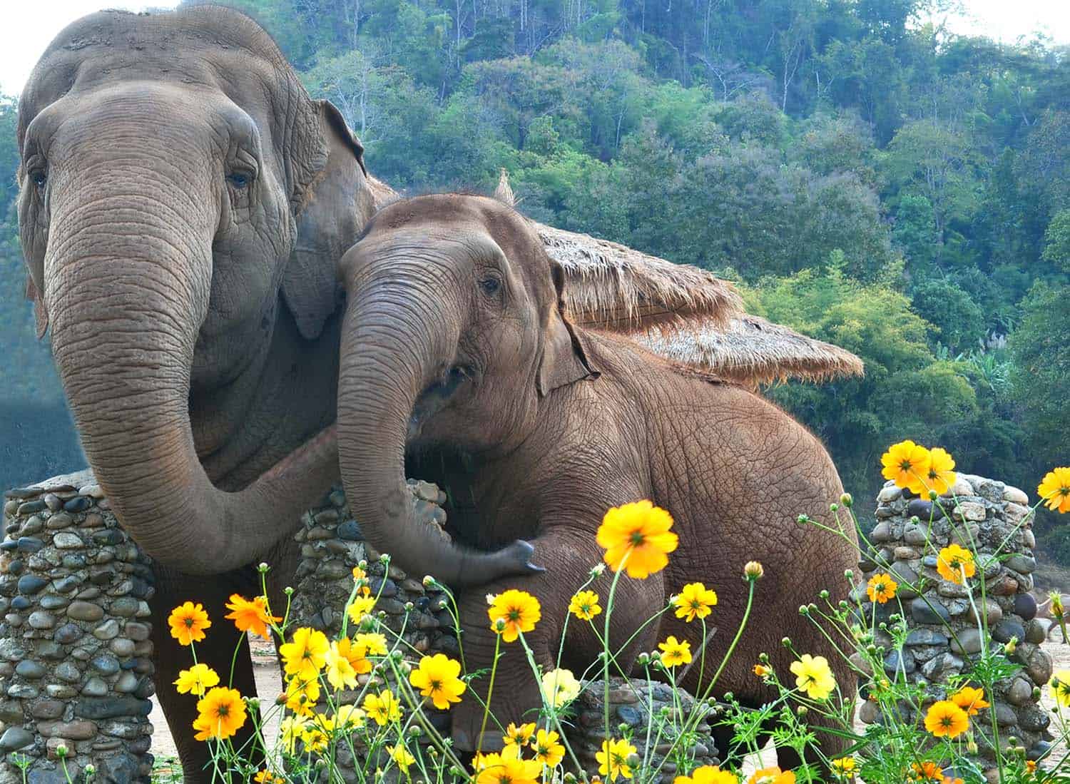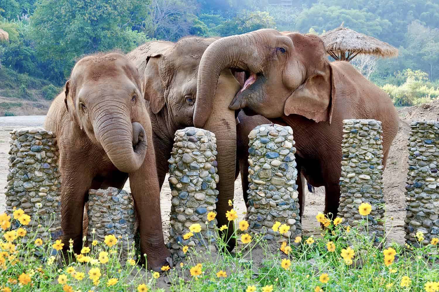 Faa Mai’s Morning Rituals Mar 5, 2026 Faa Mai is the guiding light of the Thong Ae family. Each morning brings a fresh spectacle of joy and excitement as they gather to greet the day. Trumpeting, trunk thumping, squeaks, and low rumbling echo across the valley. Some mornings, she breaks into an eager dash toward a mahout and on others, she races straight for the river—all in excitement for the day ahead. Once the initial celebration with her family settles, Faa Mai seeks out the babies in the park. There are cheerful vocalizations, gentle touches, and curious trunk sniffs—each a tender greeting rich with meaning. It’s as if she’s checking in on them, using all her senses to be sure every little one is content and well. The babies clearly adore her attention. Afterward, she often leads them to the corn stalks, and lately her newest adventure has been guiding them toward one of the “off-limits” flower gardens for a delicious snack. The garden is surrounded by stone pillars, just high enough to prevent the elephants from stepping over them. If the young ones can’t quite reach the treats with their trunks, Faa Mai patiently allows them to “sneak” food from her mouth. It is a hilarious and precious scene to witness. Faa Mai is kind and deeply respected by all the elephants at Elephant Nature Park, embodying a remarkable blend of strength and gentleness. She can call the group together in celebration or maintain order calmly when needed. Yet her greatest joy is revealed in the time she spends with the little ones. Back to News Share it