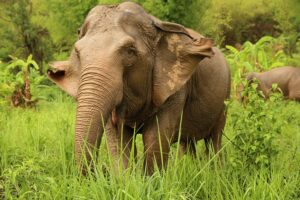 Born around 1962, Mae Sri Nuan was rescued from Surin Province, along with Dok Ngern, in late 2005. She was brought to Elephant Nature Park to begin her recovery from the trauma of her past.
