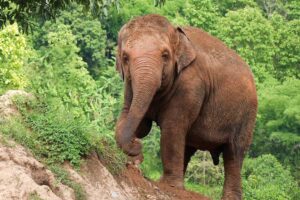 ThongAe is a female elephant born as a result of forced breeding, whereby her mother was chained while the male elephant was coerced to mate with her.